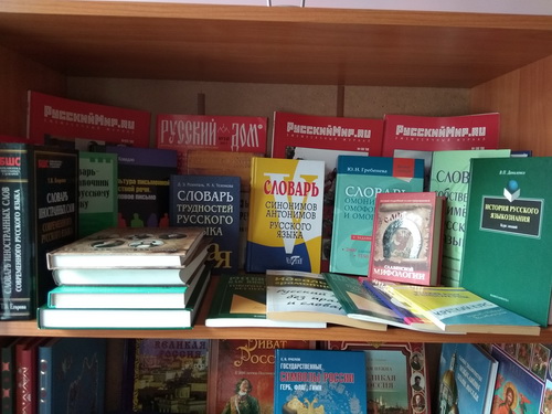 Деятельность Кабинета Русского Мирасистемна и функциональна.Кабинет Русского мира укомплектован печатными материалами, принятыми в дар из фонда «Русский мир» по основным тематическим блокам:• «Культура и искусство», • «Наука», • «Образование», • «Русский язык», • «История», • «Общество», • «Современная Россия».